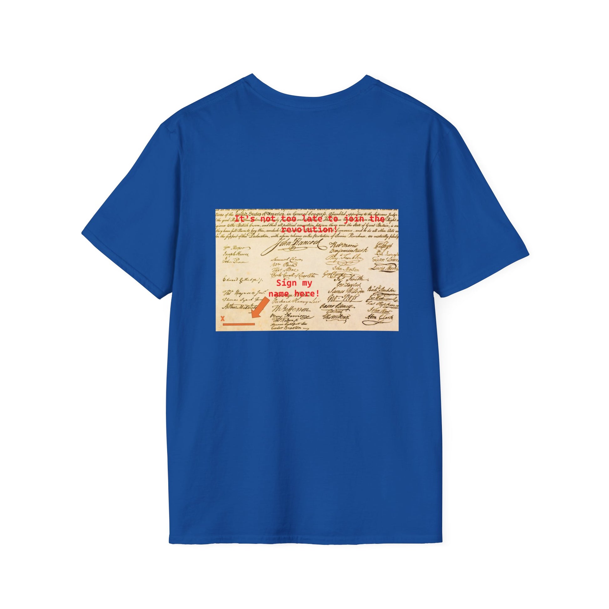 Celebrate the American Revolution and signing of the Declaration of Independence in style with our versatile Unisex Softstyle T-Shirt, ideal for anyone seeking comfort and style. This shirt blends modern design with a classic fit, making it suitable for both casual outings and more polished events. Crafted from soft, breathable cotton, it feels great against your skin while keeping you cool throughout the year. Whether you're out with friends or celebrating a holiday, this t-shirt brings a relaxed vibe to your ensemble. Perfect for adults, it makes a thoughtful gift for birthdays, holidays, or just because. Embrace your individuality and stay stylish during any occasion with this unique tee!
